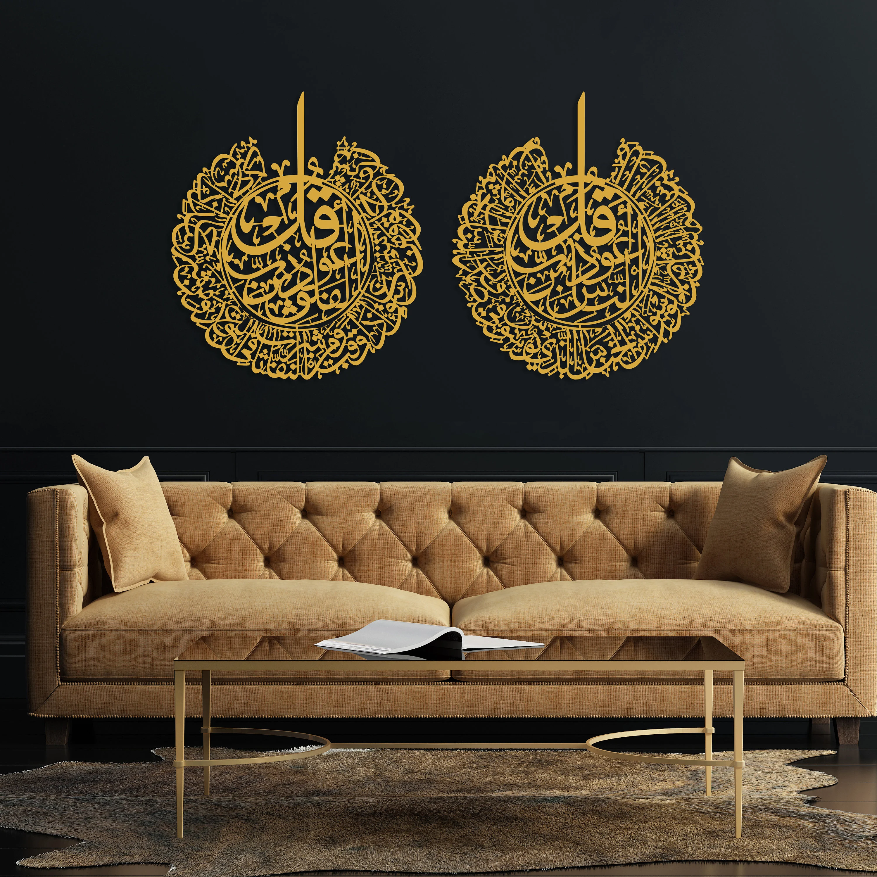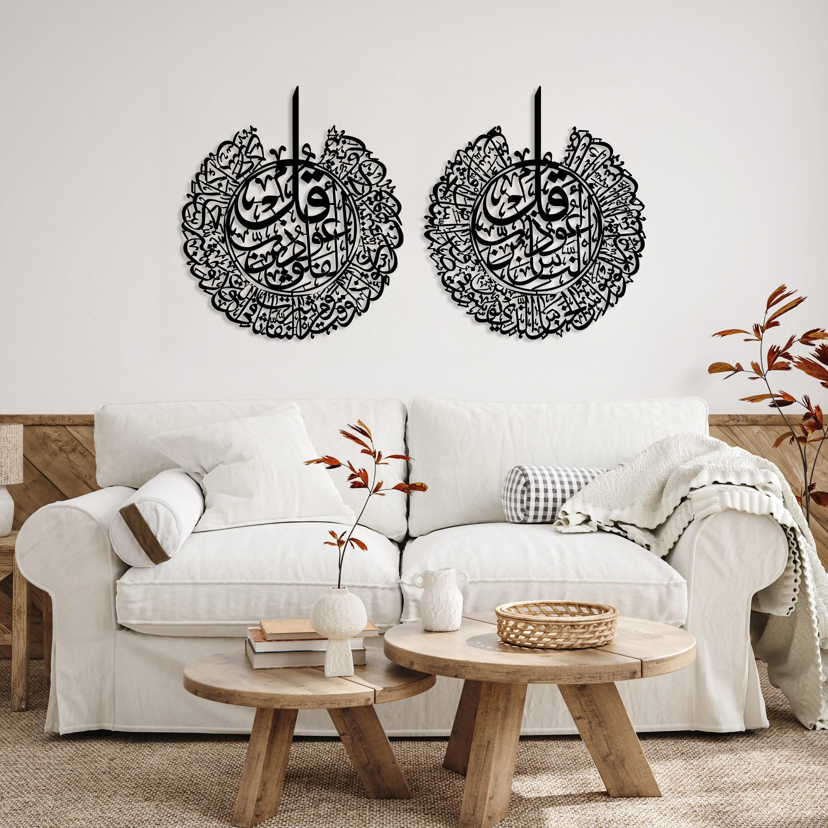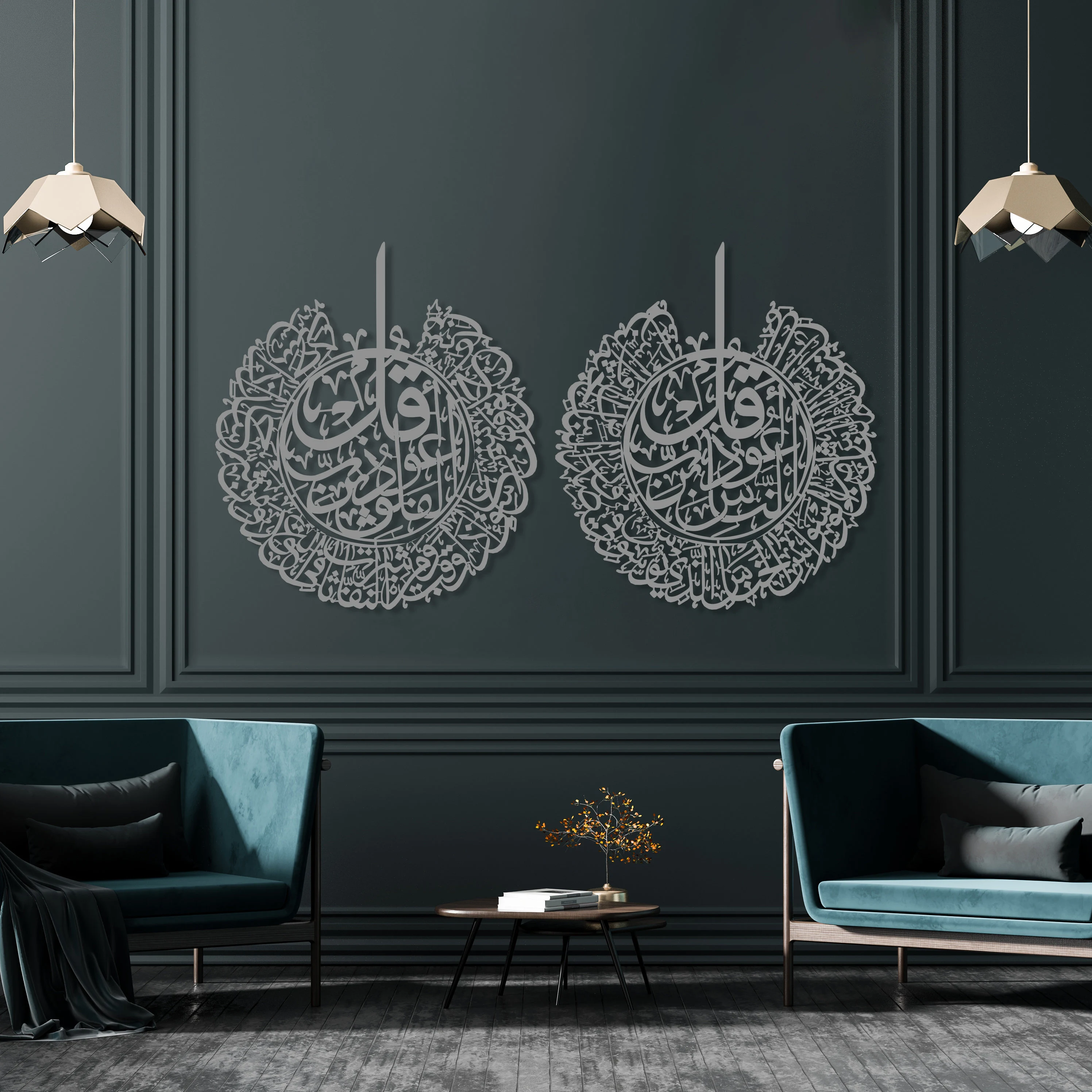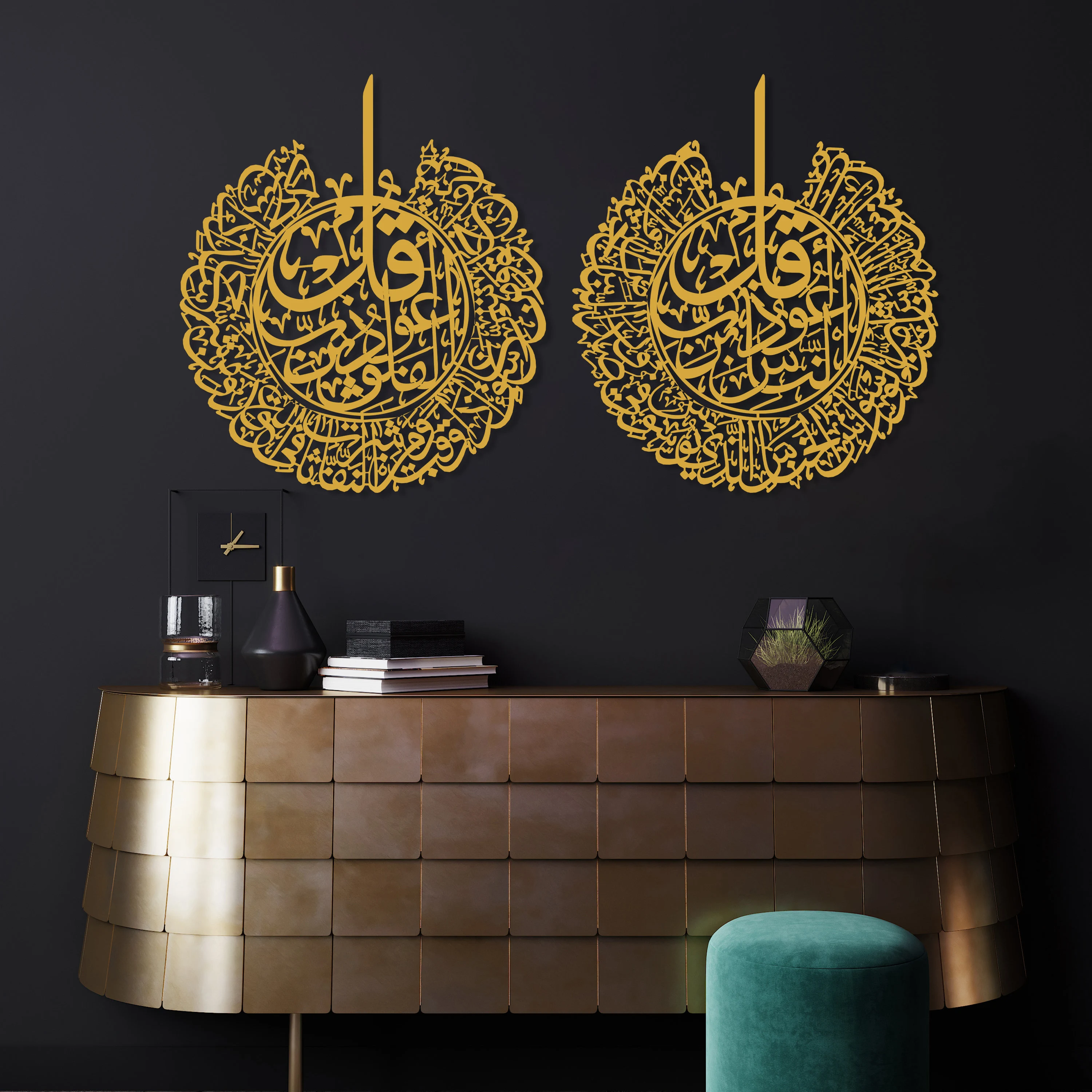 Protect and beautify your home with our metal wall art set of Surah Al-Falaq and Al-Nas. This elegant Islamic calligraphy is a powerful daily reminder of faith and divine refuge, perfectly blending spiritual solace with modern decor.