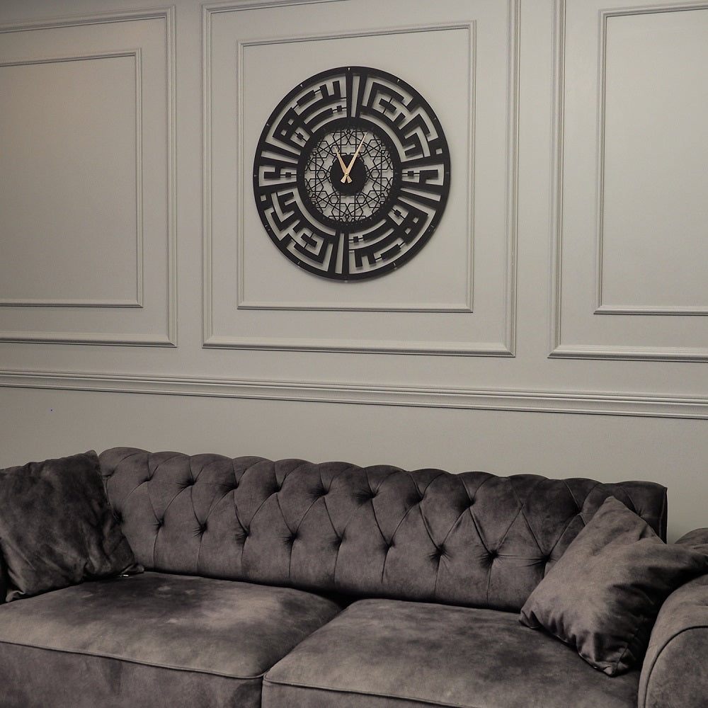 Adorn your home with a timeless piece of art and faith. This exquisite wall clock features the powerful virtues of Sabr (Patience) and Salah (Prayer) rendered in the bold, geometric beauty of Kufic calligraphy. More than just a way to tell time, it serves as an elegant and constant reminder of the two pillars that provide strength and solace. Insha'Allah, may its presence bring peace and steadfastness to your home, especially through life's challenges.